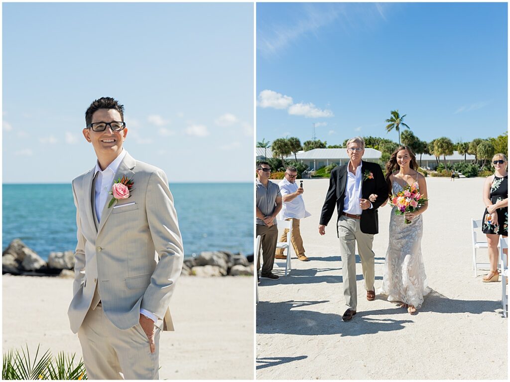 Their celebration took place at the beautiful Islander Resort. With palm trees, ocean views, and a warm island breeze, the setting was perfect. Laura and Johnny wanted a day that felt meaningful without feeling rushed, and that’s exactly what they created. The weather could not have been better, with sunny skies and that soft Florida Keys glow.